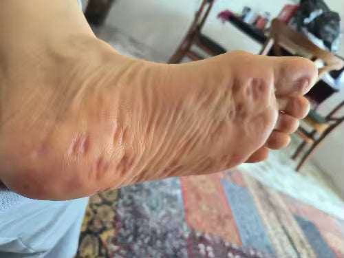 Suggested image: macro shot of nodes + foot placed on slipper.