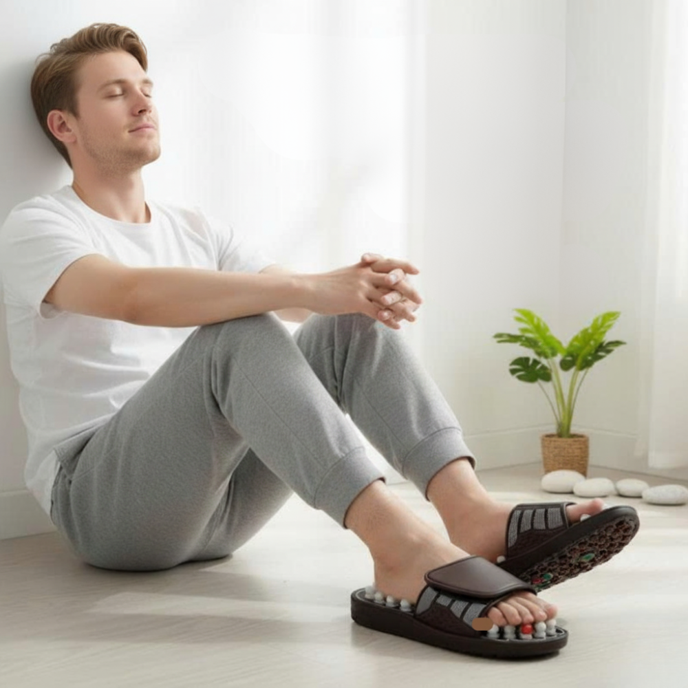 The raised nodes are designed to press into key areas of the sole while you stand or walk gently at home. It’s a simple way to create a “massage-like” sensation—ideal for end-of-day decompression.