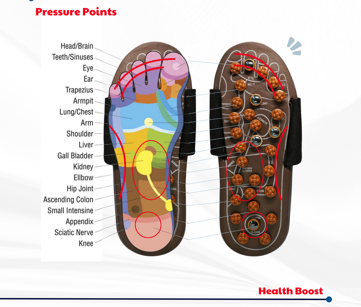 | Reflexology-style massage nodes | ||